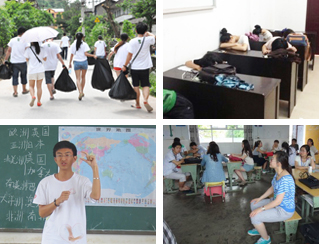 “V益·青竹”支教團隊由9名本科生組成。他們利用兩周暑假時間到湖北省竹溪縣蔣家堰鎮中原小學,開展以“團遞V夢 支教遠航”的主題的實踐活動。自7月9日開始,從“一米陽光暖庸巴”主題愛心募捐和義賣、“支教路上共成長”主題支教、“我的V夢想”主題畫展暨文藝匯演、和“團遞V夢 支教遠航”主題宣講等四個方面開展實踐活動。團隊已經在六堰廣場舉行了“一米陽光暖庸巴”報紙義賣和愛心募捐活動,將籌集到的善款和物資捐贈給中原小學。支教課堂上,志愿者們教授孩子們英語、華爾茲、電子琴、繪畫等課程,開設班級也由計劃中的一個班擴展到三個班。