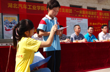 7月10日上午,湖北汽車工業學院“V益·青竹”暑期愛心支教團的大學生們在蔣家堰鎮中原小學舉行愛心捐贈活動。湖北汽車工業學院副院長閔祖傳同志、縣教育局副局長周躍忠同志以及相關領導都趕來支持。