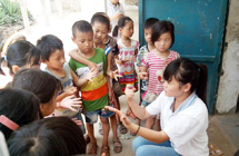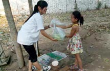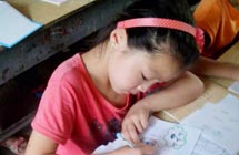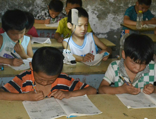 鄉村小學,沒有體育器材,沒有娛樂設施,孩子們只能選擇自娛自樂。有次,志愿者們看到孩子們用一根細樹棍,一塊石柱,就玩起了翹翹板。每到夜晚,志愿者的住處就擠滿了學生,大家或做游戲,或一起用筆記本電腦看哆啦A夢,從孩子們看動畫片的那份專注,志愿者們看得出來,孩子們很少能看到這種動畫片。天陰教室昏暗,加上學校經常斷電,孩子們不得不在陰暗的環境中上課。老師拿來自己的小臺燈給在角落的孩子照明,即使在這樣的情況下,孩子們依然學習很認真。申倩老師應該是最受歡迎的啦,她多次收到孩子們的“示愛書信”,那些小紙條上往往寫著“音樂老師你唱的歌很好聽,我喜歡你”