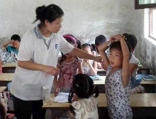 志愿者宋文靜是付里莊小學手語老師,是團隊隊員和孩子們公認的富有童趣的一小老師。她經常陪孩子們做游戲,陪他們看哆啦A夢。但就是這樣一位老師,上了課堂卻像換了個人似的,非常嚴厲。志愿者王蒙苗是付里莊小學口才勵志課老師。課堂上,她認真教學,課堂下用勵志故事激勵孩子們努力學習。因為經常照顧生病的孩子,孩子們認為她最有愛的一個老師。志愿者孔令陵是后勤人員之一及封丘支教教務主任。她每天都會在五點去最近的商店買菜,然后摘菜、洗菜,做整個團隊和部分孩子的飯菜,保障全隊生活