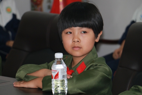 15日上午,著名黨史專家薛慶超在遼寧本溪縣為中小學生上生動抗戰歷史課。圖為課堂上認真聽講的小學生。(陸加杰 攝)