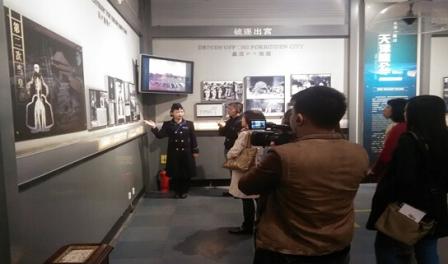 人民網“尋找歷史記憶 緬懷抗戰(zhàn)英烈”采訪團成員在長春偽滿皇宮博物院采訪。
