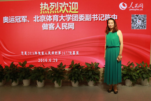 奧運冠軍、北京體育大學團委副書記陳中做客人民網(代睿 攝)