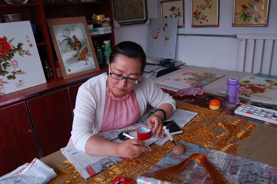 “因為喜歡”,簡簡單單四個字,卻有著震撼人心的力量,蘭州理工大學“問藝社”的同學們走進古香古色的工作室,見到了掐絲畫藝人高芬平。她曾擁有穩定的教師工作,只因對掐絲畫的無限喜愛而辭職走上了艱難辛苦的從藝之路。如今的她是一位掐絲畫高級工藝師,正在制作靜寧特色掐絲畫——絲綢之路,巨幅畫作幾乎和她一樣高。在明媚陽光的工作室里,她享受著自己忙碌中的寧靜。