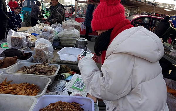 “小伙子,手機帶了嗎?掃一掃,你就用微信付款吧!”這是攤販大爺的聲音。江蘇徐州市豐縣的“閆家小旭”對家鄉集市上菜攤前的二維碼,頗為吃驚,不敢相信。她說:“不到一年時間,發現家鄉變化真得好大。中國特色社會主義‘走進新時代’,農村里的樓房越蓋越高,院子也越來越寬敞。鄉間小道變成平整寬闊的水泥路,飛奔的火車也通往家鄉。手機支付走進鄉間集市攤販,西紅柿、茄子、黃瓜、豆角等反季節蔬菜也成為春節餐桌上的家常菜!