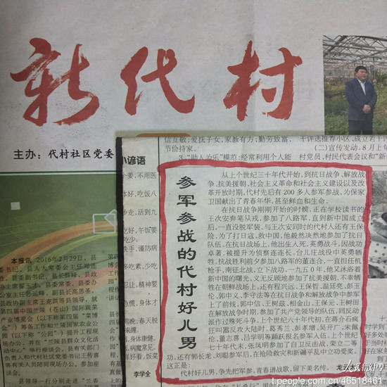 前后200多人參軍參戰,用青春譜寫戰歌,用奉獻報效祖國。這是代村人的驕傲,更是我們國家的驕傲。
