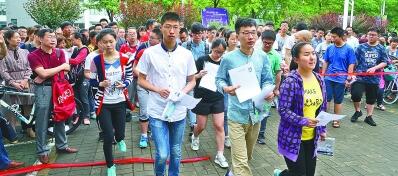 參加東南大學自主招生學科基礎測試、綜合評價學科能力測試的考生進入考場。新華社記者 孫參攝