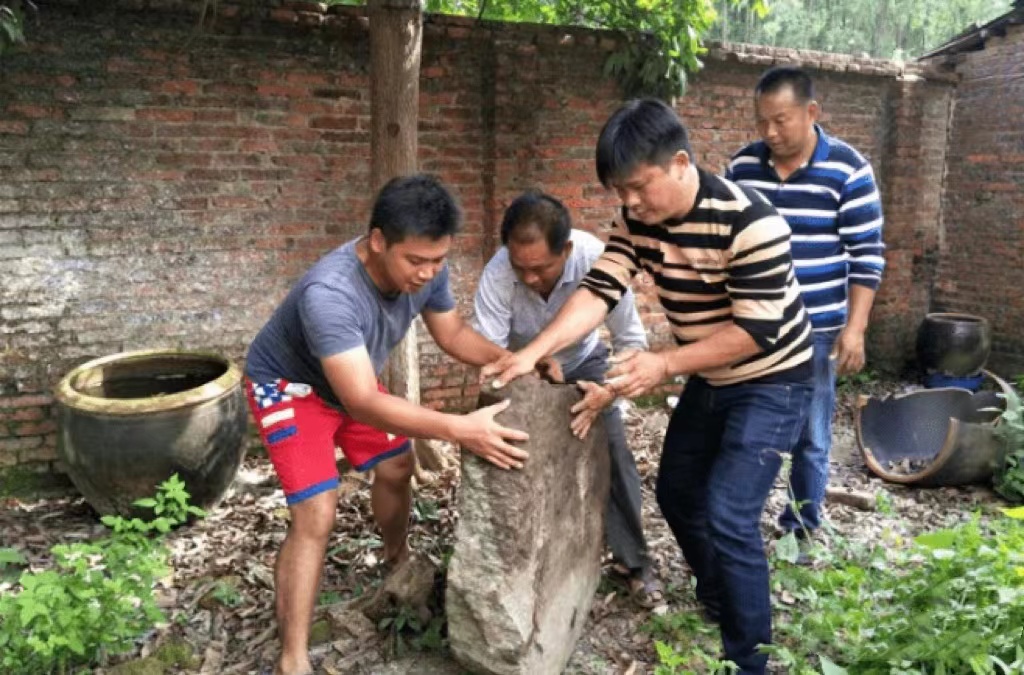 “西遷人”愛國奮斗先進事跡報告團成員林舒進(左一)在貧困戶家幫忙。受訪者供圖