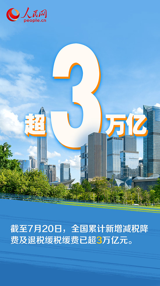 國家稅務總局黨委委員、副局長王道樹近日在新聞發布會上表示,截至2022年7月20日,全國合計新增減稅降費及退稅緩稅緩費超3萬億元。