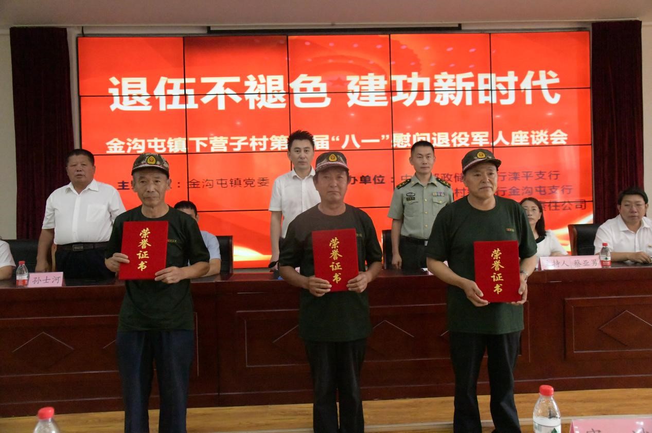 8月1日下午,灤平縣金溝屯鎮下營子村聯合愛心企業中國郵政儲蓄銀行灤平支行、灤平盛陽村鎮銀行金溝屯支行和承德久財農牧開發有限責任公司共同舉辦了“退伍不褪色 建功新時代”第二屆“八一”慰問退役軍人座談會。活動現場,大家歡聚一堂,共同慶祝中國人民解放軍建軍95周年,共敘魚水深情,并為優秀退役軍人頒發榮譽證書。 王海琦 郎朗 攝