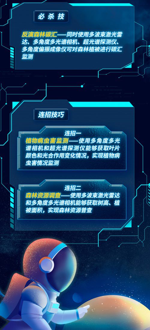 “森林碳匯監測需要有高精度的植被數據作為支撐,為了達到這一要求,研制團隊創新性地將天基測繪‘激光雷達+光學相機’為代表的主被動聯合觀測手段應用到森林監測中。” 航天科技集團五院專家表示,通過衛星獲取高精度數據,對激光雷達和多光譜相機要求很高。衛星研制團隊基于現有技術基礎,設計出了天基森林碳匯監測的“絕佳方案”:以激光雷達波束翻倍、重頻提升逾30倍,配置5個多光譜相機進行5角度綜合觀測。這種主被動聯合觀測模式,不僅充分發揮了激光雷達和多光譜相機的優勢,同時還能利用激光校準多光譜相機精度,充分滿足了森林碳匯監測的精度需求。