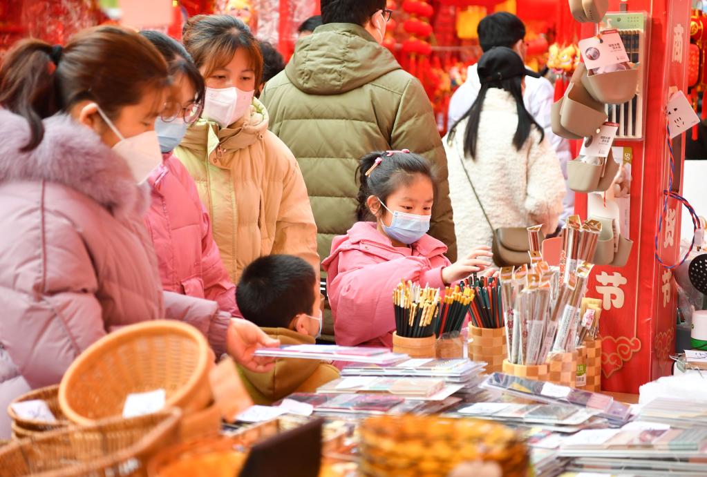 市民在西安西北小商品交易中心選購(gòu)年貨。新華社記者 張博文 攝